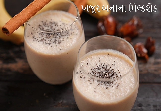 ખજૂર બનાના મિલ્કશેક રેસીપી | એસિડિટી ફ્રેન્ડલી ખજૂર બનાના સ્મૂધી | ખાંડ વગર બનાના ખજૂર શેક.