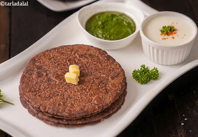 एक ऐसी रोटी जो आपको घर की याद दिलाने के लिए निश्चित है। रागी रोटी रेसिपी या रागी चपाती को १००% रागी से बनाया जाता है, जो इसे सुपर हेल्दी बनाता है। इस भारतीय रोटी को सादी नचनी रोटी या लाल बाजरा रोटी भी कहा जाता है। यह शानदार सादी रागी रोटी कैल्शियम और प्रोटीन से भरपूर होती है, जिसे हमारी हड्डियों को सहारा देने और क्रमशः हमारे शरीर में कोशिकाओं को बनाए रखने के लिए आवश्यक है। रागी रोटी वजन घटाने, मधुमेह, हृदय रोगियों के लिए अच्छी है |