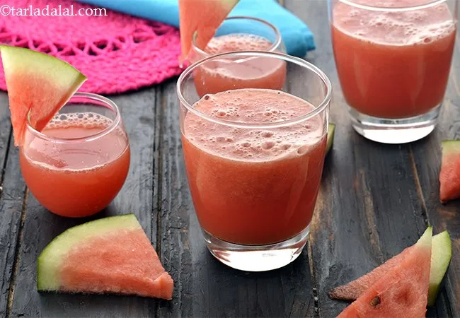 ginger melon juice recipe | watermelon lemon ginger juice | healthy ginger melon juice is an eye-appealing drink with many benefits to reap.Watermelon, a vital fruit loaded with iron and is also an effective diuretic. It also abounds in vitamin Cwhich acts as an immune boosting vitamin. Besides having the goodness of watermelon, this vitality healthy ginger melon juice also contains the miraculous power of 'gingerol', a substance present in ginger that dilates blood vessels and improves blood circulation.