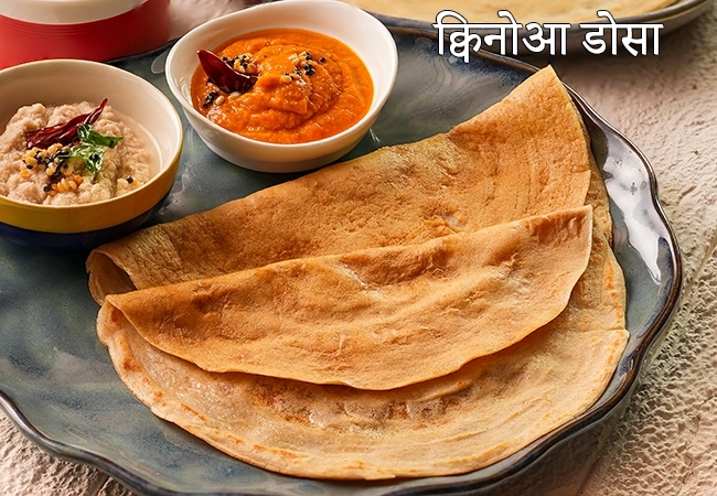 एक और पौष्टिक नाश्ता विकल्प क्विनोआ डोसा है। उड़द के साथ क्विनोआ और गेहूं के आटे को मिश्रित करने वाले एक बैटर के साथ बनाया गया, ये क्विनोआ डोसा बहुत स्वादिष्ट होते हैं और एक अद्भुत बनावट का एहसास भी कराते हैं। बैटर को किण्वन की आवश्यकता नहीं होती है, इसलिए आप इस डोसा को किसी भी समय बना सकते हैं, हालांकि आपको इसे पीसने से पहले उड़द को भिगोने के लिए एक घंटे का समय प्रदान करना होगा।