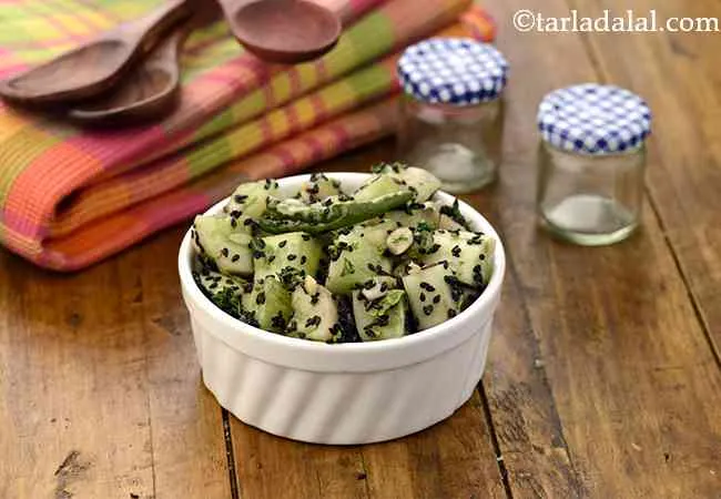 A traditional Kerala-style pachadi made with grated cucumber, curd, coconut paste, mustard seeds, and curry leaves. This is extremely quick — no cooking except a small tempering. The flavour is cooling, lightly sweet from coconut, tangy from curd, and aromatic from the South Indian tadka. It pairs perfectly with sambar rice or avial meals.