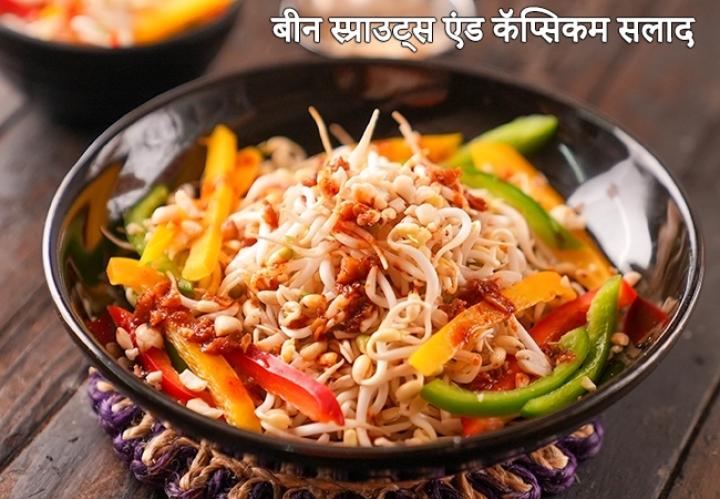 4. बीन स्प्राउट्स एंड कॅप्सिकम सलाद रेसिपी bean sprouts and capsicum salad