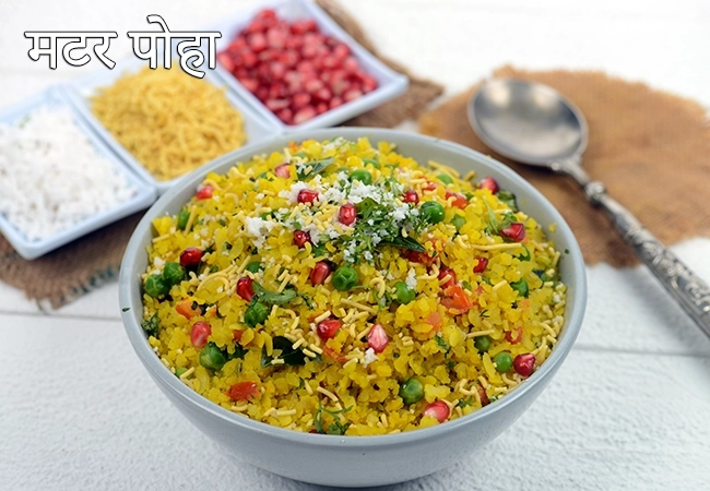 हरे मटर के साथ बनाया गया पोहा।