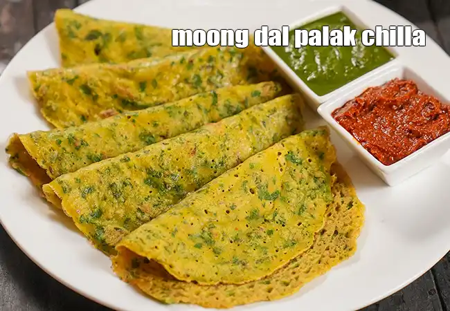 मूंग दाल और पालक से बने नमकीन पैनकेक।