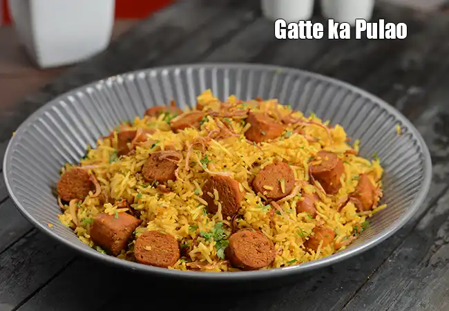 ગટ્ટે પુલાવ — ચોખા અને બેesanના ગટ્ટાનો મસાલેદાર મિશ્રણ, જે રસદાર રાજસ્થાની સ્વાદ આપે છે।