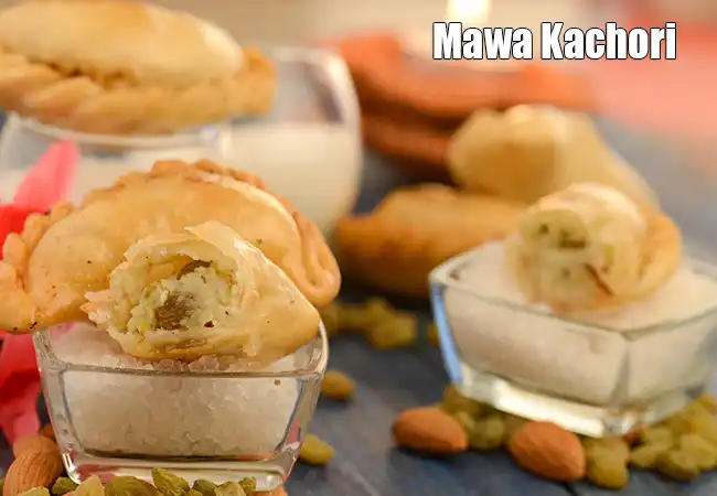 Mawa Kachori is a Rajasthani specialty filled with sweetened khoya.