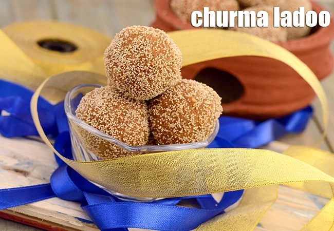 Churma Ladoo is a traditional sweet made from coarsely crushed wheat flour dough cooked in ghee.