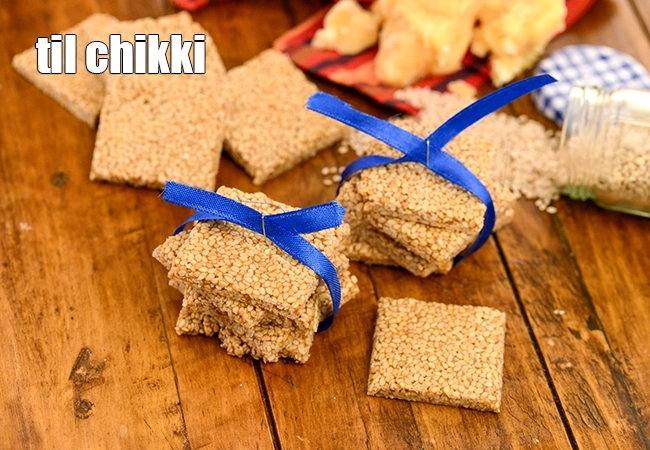 Til Chikki is made using sesame seeds and jaggery syrup.