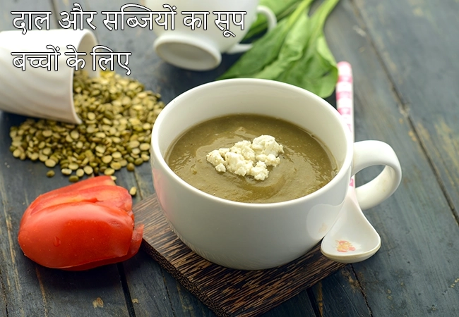एक स्वस्थ टॉडलर सूप, जिसमें प्यूरी और सब्जि होती है वह है दाल और वेजिटेबल सुप | बच्चों के लिए हेल्दी दाल का सूप | मूंग दाल वेजिटेबल सूप शिशुओं के लिए | दाल एण्ड वेजिटेबल सूप | dal vegetable soup for babies and toddlers