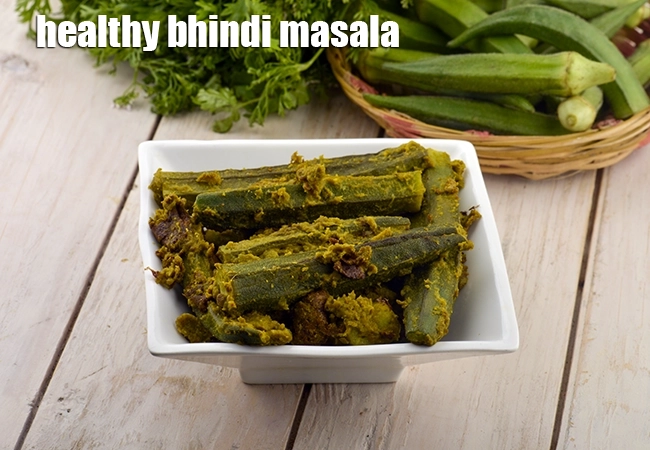 healthy bhindi masala recipe | dry lady finger sabzi | tava okra in coriander and onion paste | … More..