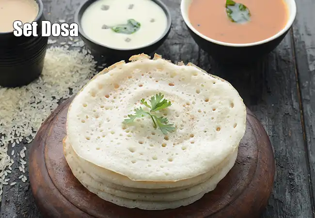 Set Dosa consists of soft, thick dosas served in a set. They are fluffy and mildly fermented. The soft texture makes them kid-friendly. Set Dosa works well for relaxed family breakfasts. It is a comforting South Indian Breakfast option.