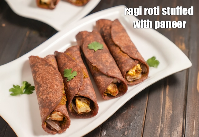 ragi roti stuffed with paneer recipe | nachni paneer wrap | healthy red millet Indian wrap