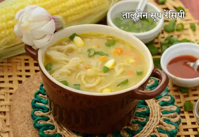 मज़ेदार संतुलित स्वाद से भरा और सब्ज़ीयों से भरपुर, यह तालूमेन सूप एक मशहुर चायनीज व्यंजन है जो भारत के भी लगभग हर चायनीज रेस्ट्रारन्ट में मिलता है। इस सूप में नूडल्स् और सब्ज़ीयाँ होती है, जिसमें सोया सॉस का स्वाद भरा होता है और वेजिटेबल सटॉक भी होता है।