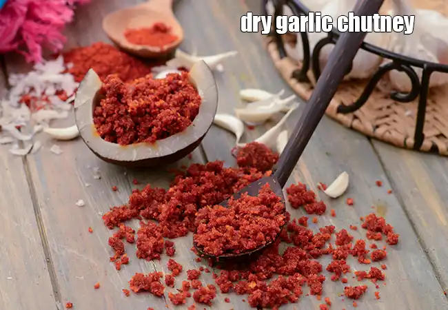 Western India is known for bold quick chutneys, including dry garlic chutney and green chilli thecha. These chutneys are rustic, coarse, and intensely flavored, often made by pounding or grinding with minimal processing. Peanut-curd chutneys offer a cooling, no-cook alternative, especially during fasting days.