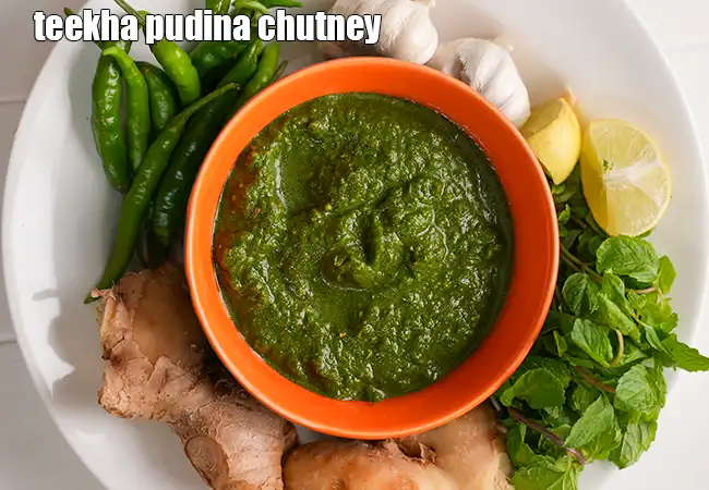 A fast chutney made with coriander, mint, green chillies, and lemon juice. Prepared by simple blending with no cooking involved.