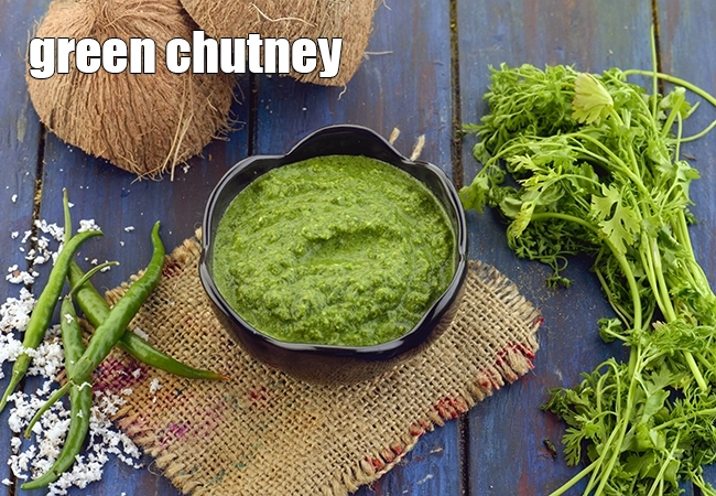 કોથમીર, પુદીના, લીલા મરચાં અને લીંબુના રસથી બનેલી ઝડપી ચટણી.