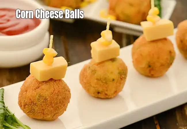 કોર્ન ચીઝ બોલ્સ: સ્વીટ કોર્ન અને ઓગળતી ચીઝથી ભરેલા સુવર્ણ તળેલા બોલ્સ. બહારથી કરકરા અને અંદરથી ક્રીમી, બધા વયના લોકોના ફેવરિટ.