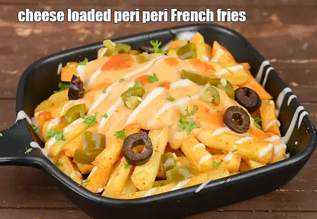 ચીઝ લોડેડ પેરી પેરી ફ્રેન્ચ ફ્રાઇઝ : કરકરા ફ્રેન્ચ ફ્રાઇઝ પર ઓગળેલી ચીઝ અને તીખો પેરી પેરી મસાલો નાખીને બનાવવામાં આવે છે, જે દરેક બાઇટમાં ચટપટો અને ચીઝી સ્વાદ આપે છે.