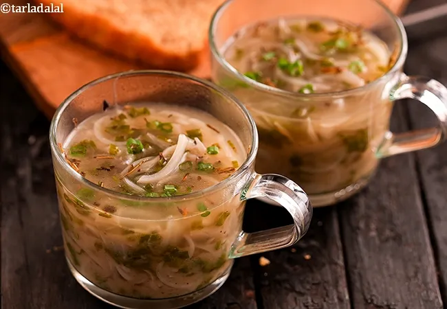 अनियन थाईम सूप | प्याज का सूप | हेल्दी अनियन थाईम सूप | कम कैलोरी अनियन सूप | Onion Thyme Soup