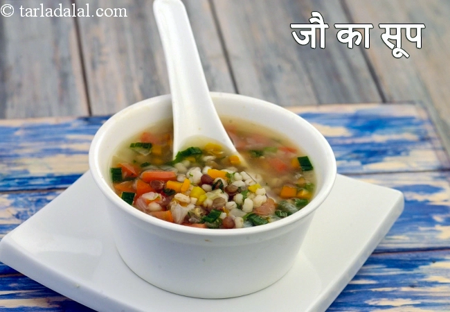 जौ का सूप रेसिपी | वेजिटेबल जौ का सूप | हेल्दी जौ का सूप | Vegetable Barley Soup, Indian Style Healthy Barley Soup