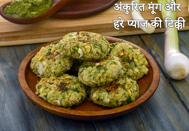 अंकुरित मूंग और हरे प्याज की टिक्की रेसिपी | मधुमेह के लिए अंकुरित मूंग कटलेट | स्वस्थ मूंग की टिक्की | स्वस्थ अंकुरित मूंग कटलेट | moong sprouts and spring onion tikki recipe in hindi