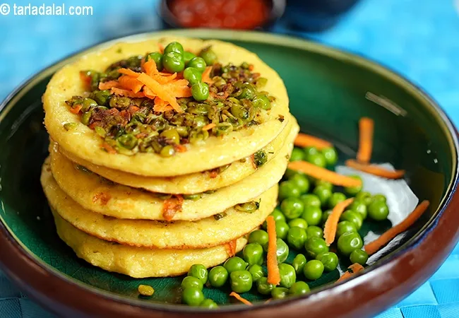 If Punjabi love their parathas, South Indians love their uttapam recipes! Thicker than dosas, these pancakes are a delight to bite into because they are crispy and spongy too. They can be made large and thick, or in a mini format that is delightful to behold and handy to devour. In fact, these days, special non-stick tavas are available to make mini uttapas, so you can make a batch of 7-12 uttapas at one go like the Mini Rava Uttapa , Mini green Pea Uttapa.