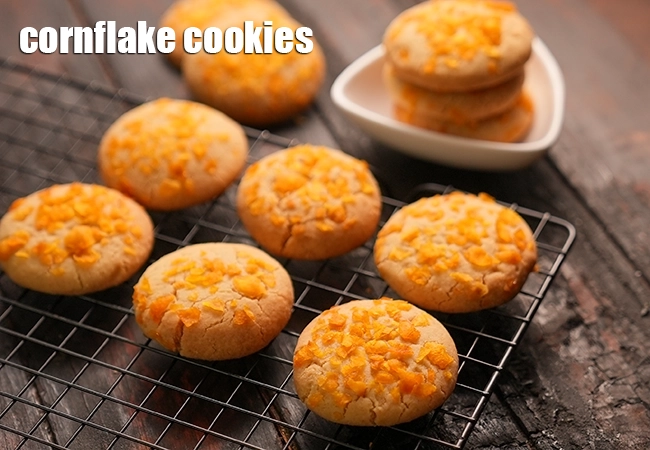cornflake cookies recipe | eggless cornflake cookies | easy Indian cornflake cookies | crunchy Indian cornflake cookies | … More..