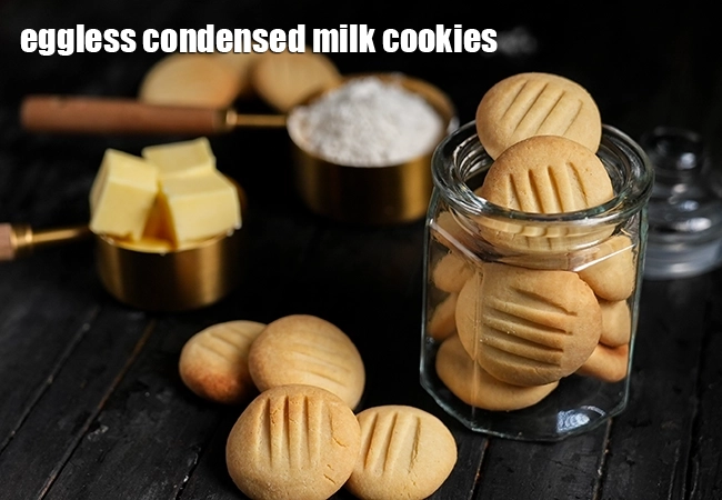 eggless condensed milk cookies recipe | Indian style condensed milk cookies | milkmaid butter cookies | with 22 … More..