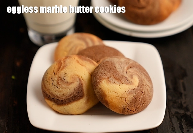 eggless marble butter cookies recipe | chocolate butter cookies | vanilla chocolate marble cookies. These melt-in-the-mouth chocolate butter biscuitsare loaded with butter and cocoa, two potent ingredients that have the power to transform any food into an irresistible treat. You will find that the butter not only gives this biscuit a fabulous texture but also a rich flavour, notably buttery.