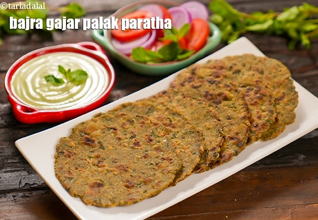 bajra gajar palak paratha recipe | healthy bajra vegetable roti | gluten free bajra gajar palak thepla | … More..