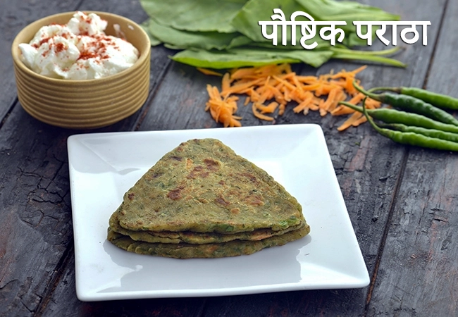 पौष्टिक पराठा पूरे गेहूं के आटे से बनाया जाता है, जिसमें पालक, गाजर, दही और हरी मिर्च का पेस्ट डाला जाता है। फिर आटे को १५ भागों में विभाजित किया जाता है और स्वस्थ पौष्टिक पराठा बनाने के लिए एक नॉन स्टिक तवा पर पकाया जाता है। इस पूरे गेहूं के पौष्टिक पराठा लिए सुझाव दिया गया गाजर और पालक के संयोजन का। पौष्टिक पराठा न केवल स्वादिष्ट है, बल्कि आपके बच्चों के लिए सेहतमंद है।