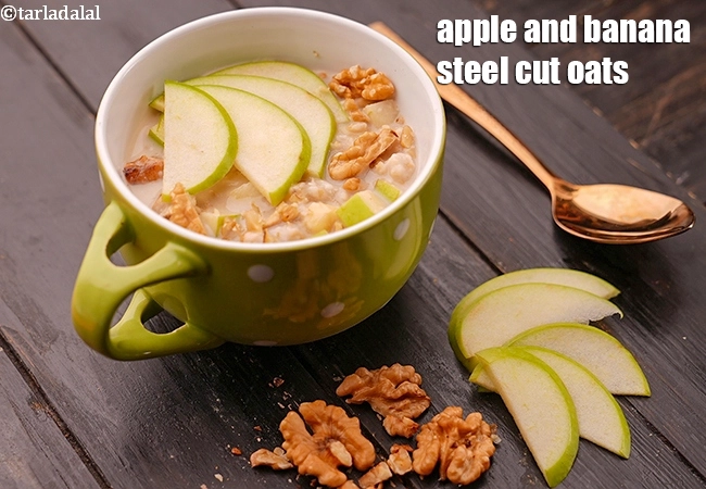 apple and banana steel cut oats recipe | vegan banana apple steel cut oatmeal with almond milk| healthy Indian apple and banana steel cut oats |