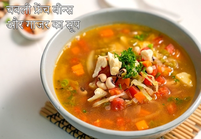 चवली फ्रेंच बीन्स और गाजर का सूप रेसिपी | काउपीस वेजिटेबल सूप | हेल्दी ब्लैक आईड बीन वेज सूप | चवली फ्रेंच बीन्स और गाजर सूप की एक सर्विंग में 61 कैलोरी, 9.1 ग्राम कम कार्बोहाइड्रेट होता है।