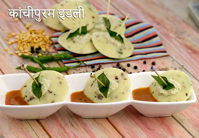 कांचीपुरम इडली एक पारंपरिक मसालेदार इडली है जिसमें काली मिर्च और जीरा डाला जाता है।