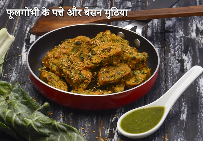 फूलगोभी के पत्ते और बेसन मुठिया रेसिपी | हेल्दी फूलगोभी के पत्ते नाश्ता | आयरन से भरपूर मुठिया | cauliflower greens and besan muthia recipe in hindi