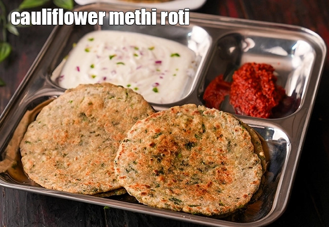 ફૂલકોબી મેથી રોટી — એક વાટકી દહીં અને ખીચડી સાથે લેવાય તો તે ડાયાબિટીસ ધરાવતા લોકો અને હૃદયરોગથી પીડિત લોકો માટે સંપૂર્ણ અને પોષક ભોજન બને છે.