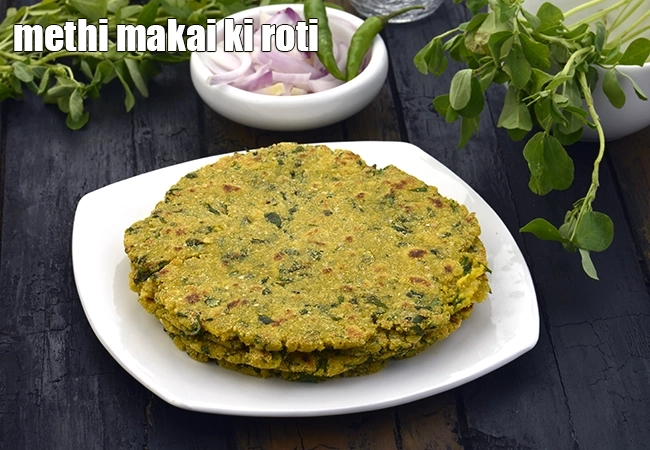 મેથી મક્કી રોટી – આયર્નથી ભરપૂર મેથી અને ફાઈબરયુક્ત મકાઈનો સંયોજન, ધીમે ઊર્જા આપે છે।