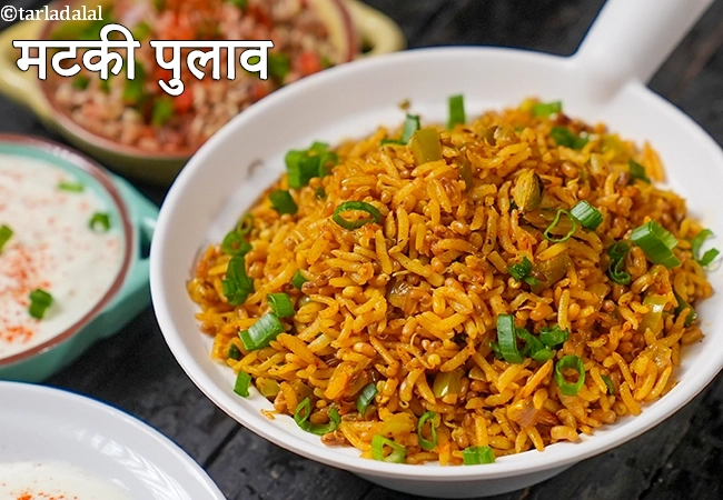 मटकी पुलाव रेसिपी | ब्राउन राइस मोठ बीन्स पुलाव | हेल्दी अंकुरित मटकी चावल | मटकी पुलाव रेसिपी हिंदी में | matki pulao recipe in hindi | हेल्दी मटकी पुलाव के और भी फायदे हैं! अंकुरित मटकी में फाईबरप्रचुर मात्रा में होता है और इस प्रकार यह वजन पर नजर रखने वाले, मधूमेह, हृदय रोग आदि के लिए एक आदर्श विकल्प है। अंकुरित करने की प्रक्रिया से मटकी में प्रोटिन की मात्रा 30% तक बढ़ जाती है। मटकी पुलाव की एक सर्विंग में आपके अनुशंसित आहार भत्ते (आरडीए) का 16% आयरन, 40% विटामिन बी 1, 16% प्रोटीन होता है।