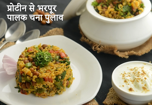 प्रोटीन से भरपूर पालक चना पुलाव | पौष्टिक वेजिटेबल ब्राउन राइस | चना पालक ब्राउन राइस | भारतीय पालक ब्राउन राइस पुलाव | palak chana pulao in hindi | प्रोटीन से भरपूर पालक चना पुलाव की एक सर्विंग में आपके अनुशंसित आहार भत्ते (आरडीए) के 5.9 ग्राम 11% प्रोटीन, 40% फोलिक एसिड, 30% विटामिन बी 1, 34% विटामिन ए होता है।