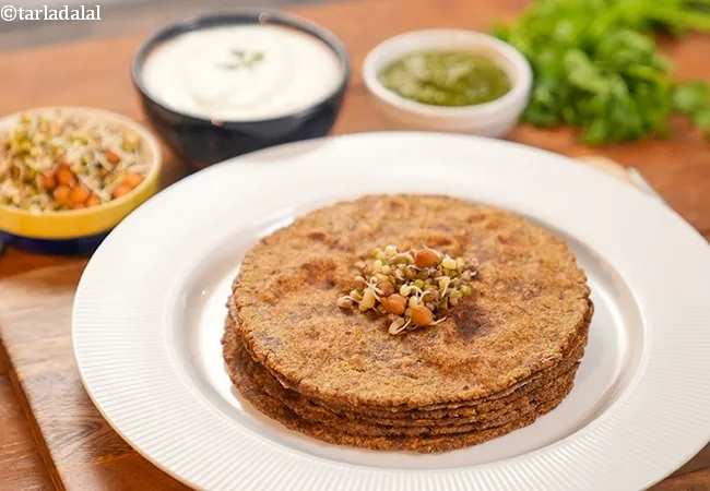 मिश्रित अंकुरित पराठा रेसिपी | स्वस्थ अंकुरित अलसी पराठा | मिश्रित अंकुरित अलसी पराठा | 2 मिश्रित अंकुरित पराठे 7.2 ग्राम प्रोटीन देते हैं (14% आरडीए)
