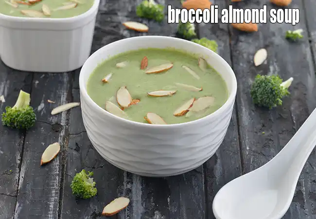 Broccoli and Almond Soup | broccoli almond soup recipe | protein rich soup | healthy almond broccoli soup |