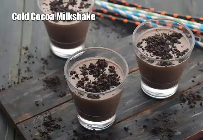 કોલ્ડ કોકો મિલ્કશેક એક રિચ અને ક્રીમી ડ્રિંક છે, જે દૂધ, કોકો પાઉડર, ખાંડ અને બરફથી બનાવવામાં આવે છે. તેનો ચોકલેટી સ્વાદ ઉનાળામાં બહુ રિફ્રેશિંગ લાગે છે. આ મિલ્કશેક ઝડપથી બની જાય છે અને મીઠું ખાવાની ઇચ્છા થાય ત્યારે પરફેક્ટ છે. બાળકો અને મોટા બંનેને તેની સ્મૂથ અને ઘાટી ટેક્સચર બહુ ગમે છે. તેને વધુ ટેસ્ટી બનાવવા માટે તેમાં આઇસ્ક્રીમનો એક સ્કૂપ પણ ઉમેરી શકાય છે. તેને ઠંડું કરીને બરફ અથવા ચોકલેટ શેવિંગ્સ સાથે સર્વ કરવું સૌથી સારું લાગે છે. કોલ્ડ કોકો મિલ્કશેક પાર્ટી માટે ઉત્તમ ડ્રિંક છે અને મૂડ તરત જ સારો કરી દે છે।