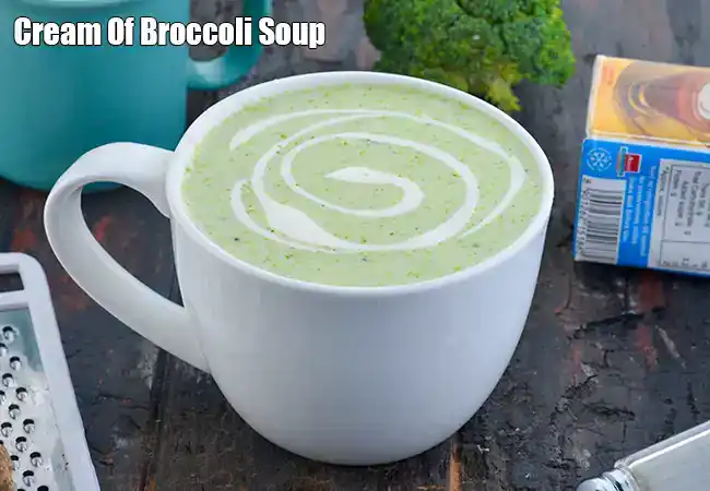 A creamy, delicious Indian style veg cream of broccoli soup enjoyed hot during winters,