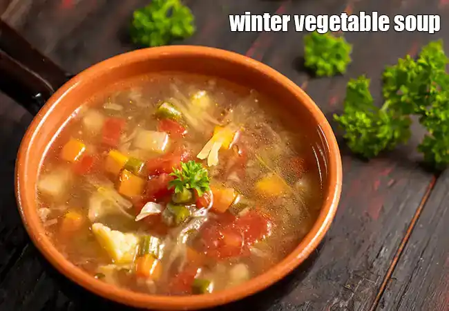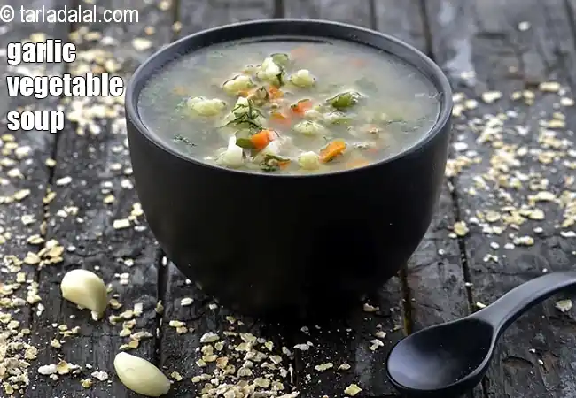 A tempting soup made with mixed vegetables flavoured with garlic,