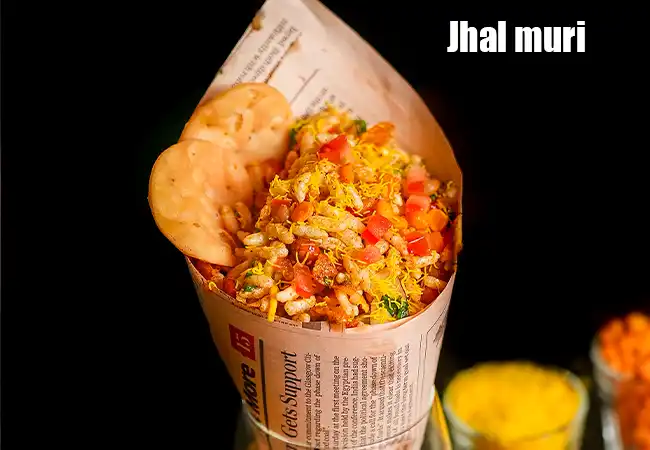 झालमुरी — सरसों तेल के साथ तीखी मुरमुरे की चाट।