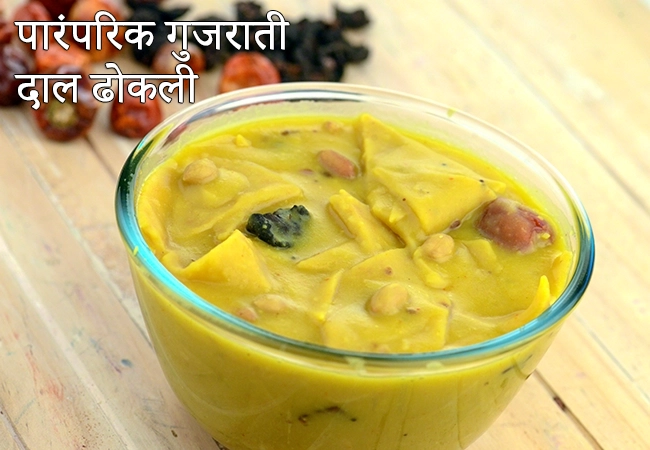 दाल ढोकली — गेहूँ की ढोकली के साथ मसालेदार गुजराती दाल।