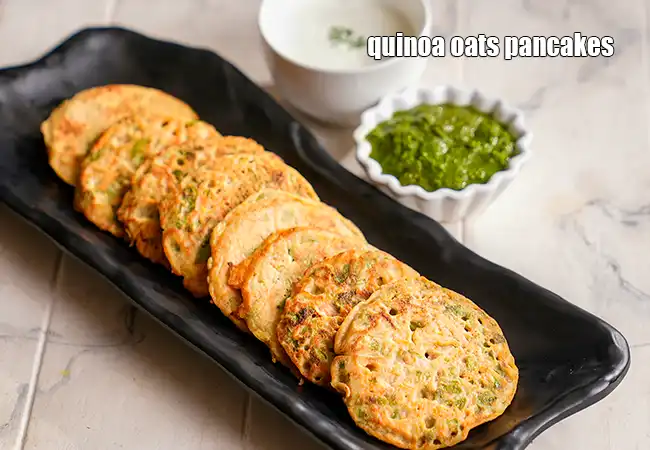 quinoa oats pancakes recipe | quinoa oats vegetable pancakes for Irritable bowel syndrome | healthy quinoa vegetable Indian pancake |