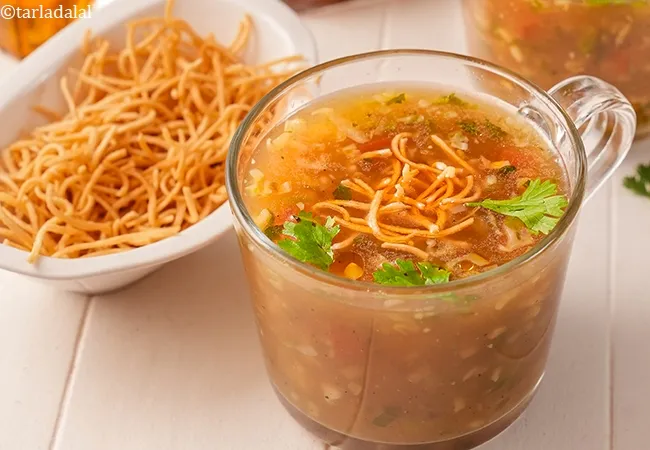 Jain manchow soup is a vegetarian variation of the popular Indo-Chinese Manchow Soup, adapted to meet Jain dietary restrictions, which avoid root vegetables and certain ingredients.