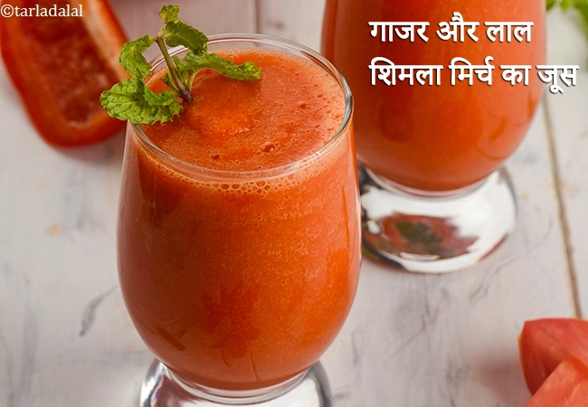 मेरा एक और पसंदीदा है गाजर और लाल मिर्च का रस | भारतीय लाल शिमला मिर्च गाजर का रस | स्वस्थ टमाटर गाजर लाल शिमला मिर्च पेय | carrot and red pepper juice जो आपकी आंखों के लिए बहुत अच्छा सब्जी का रस है और इसमें कुछ टमाटर भी हैं।