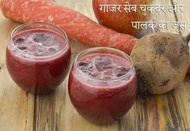 एक ही ड्रिंक में ब्रेन बूस्टर, जब एकाग्रता का स्तर गिर रहा हो, तो आपको ज़रूर आज़माना चाहिए। परीक्षा दे रहे बच्चों के लिए भी बढ़िया। ब्रेन बूस्टर नाम से, गाजर, सेब, चुकंदर और पालक का जूस रेसिपी | गाजर, सेब, चुकंदर और पालक का जूस रेसिपी | चुकंदर, पालक और गाजर का जूस | गाजर, चुकंदर, पालक जूस के फायदे | हेल्दी गाजर, चुकंदर डिटॉक्स जूस | carrot apple beetroot and spinach juice जिसमें चुकंदर, गाजर और पालक में आयरन, फोलिक एसिड और ज़िंक होता है, ये सभी रक्त में ऑक्सीजन ले जाने की क्षमता को बेहतर बनाते हैं और इस तरह दिमागी शक्ति, एकाग्रता और याददाश्त बढ़ाते हैं।